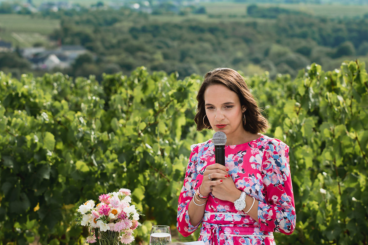 Le parc du château de la Soucherie, ses pentes verdoyantes et ses vignes à perte de vue était l’écrin parfait pour cette union digne d’un conte de fée moderne.